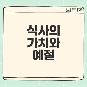 - 기다림: 음식을 먹기 전에 모두가 앉을 때까지 기다리는 것이 기본적인 예의이다.